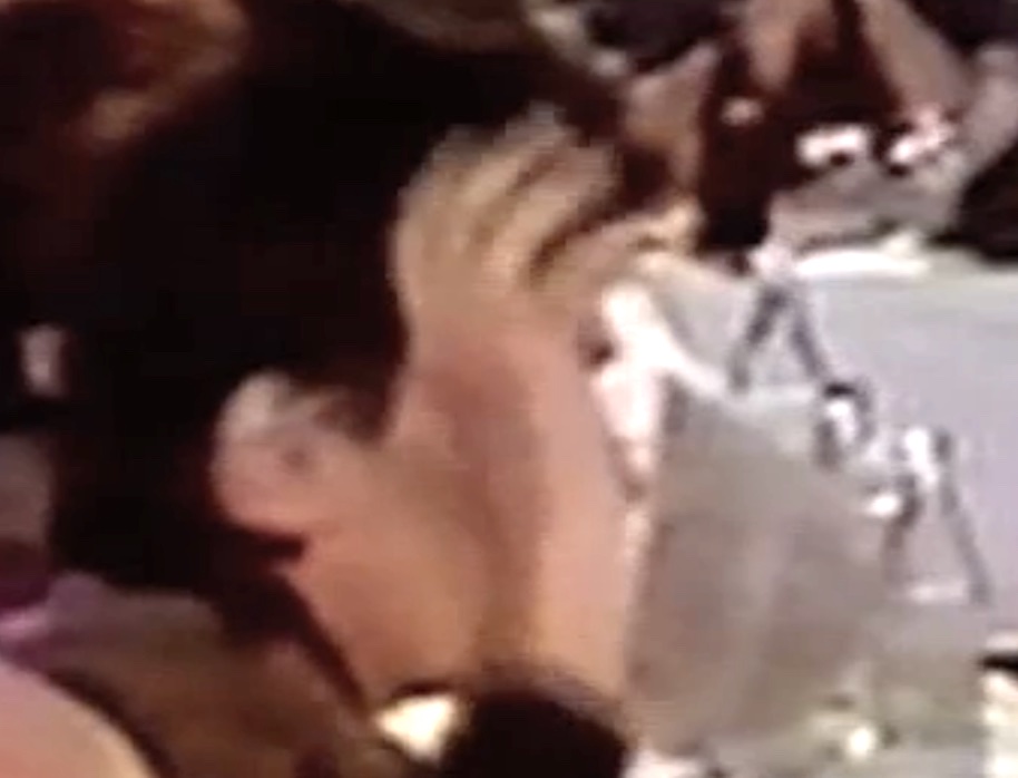 She lifts her head above that of the man to her right. “Now we are hearing it”, she says before lowering her head again, turning it left and out of sight.