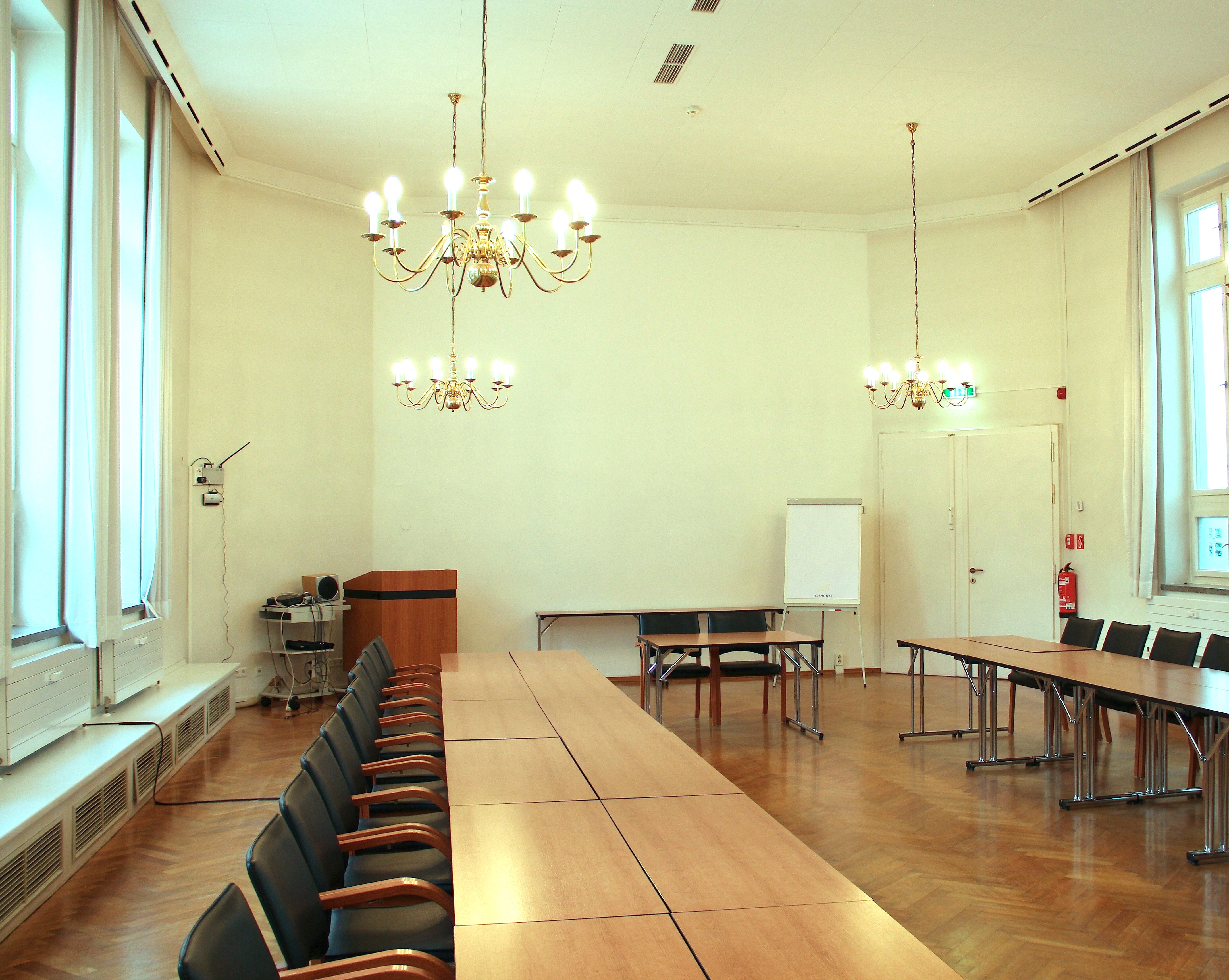 This is the same short side of the Round Table seen in the clip shot from the outside, filmed here by Klaus Freymuth in the opposite direction, towards the window in a scene about 15 minutes after the end of the scene of the interruption of the Round Table.