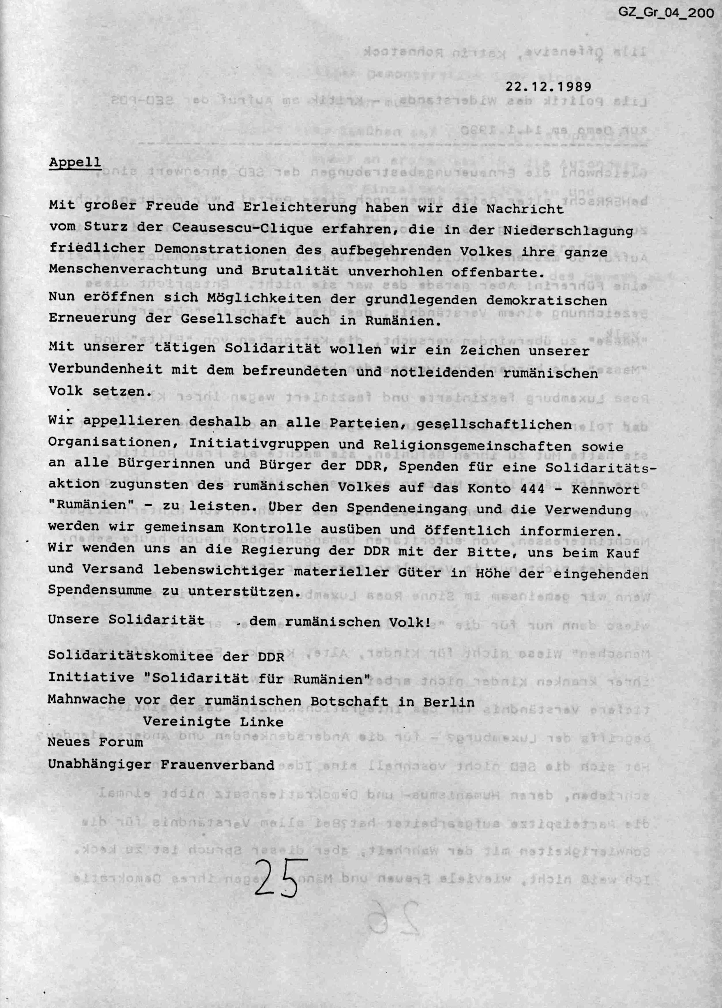 It is with great pleasure and relief that we received the news that the Ceausescu-Clique has been toppled. Their repression of the peaceful protests of the insurgent people has once more exposed their brutality and contempt for their people.